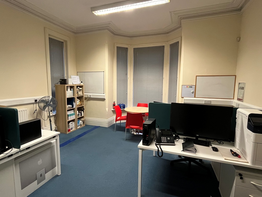 - Open plan office with two separate rooms